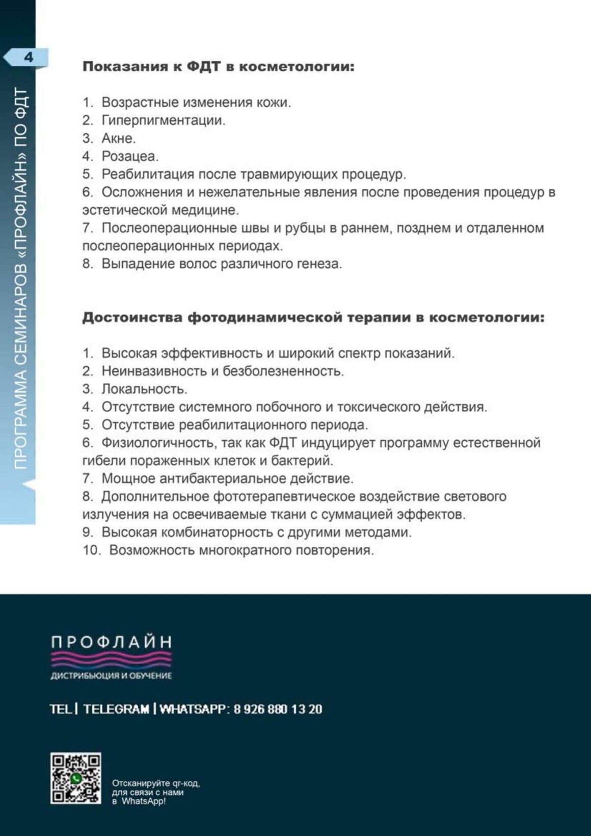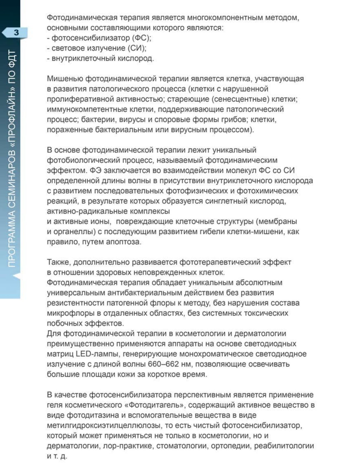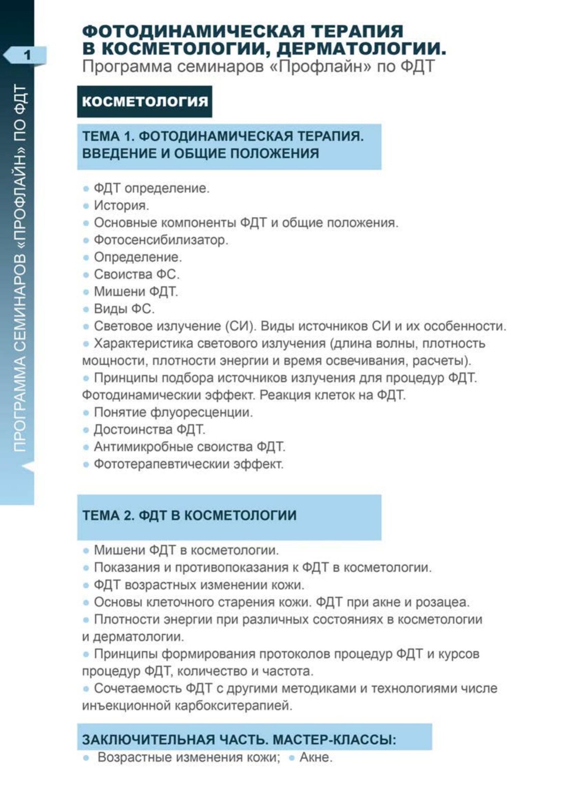 ОБУЧАЮЩИЙ КУРС «ПРОФЛАЙН» ФОТОДИНАМИЧЕСКАЯ ТЕРАПИЯ В КОСМЕТОЛОГИИ, ДЕРМАТОЛОГИИ